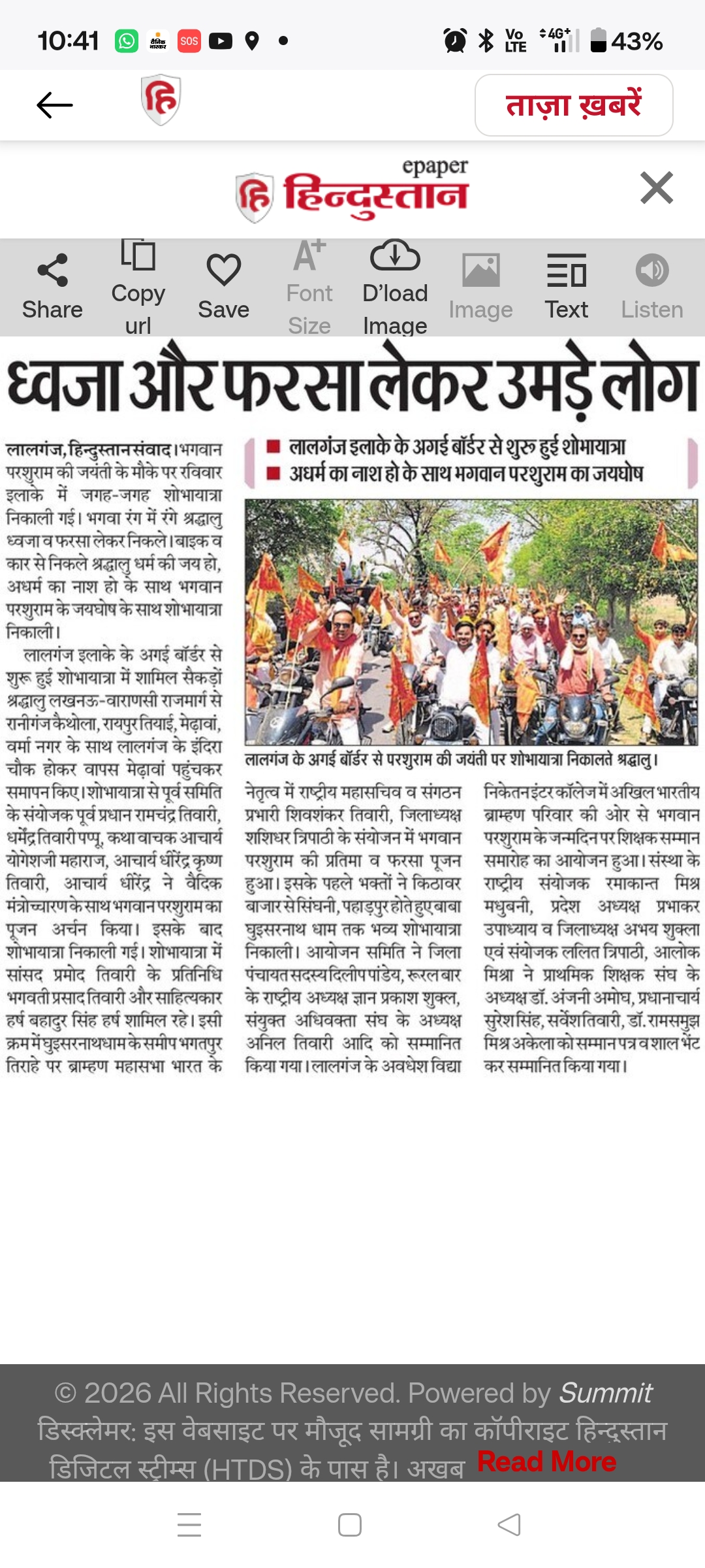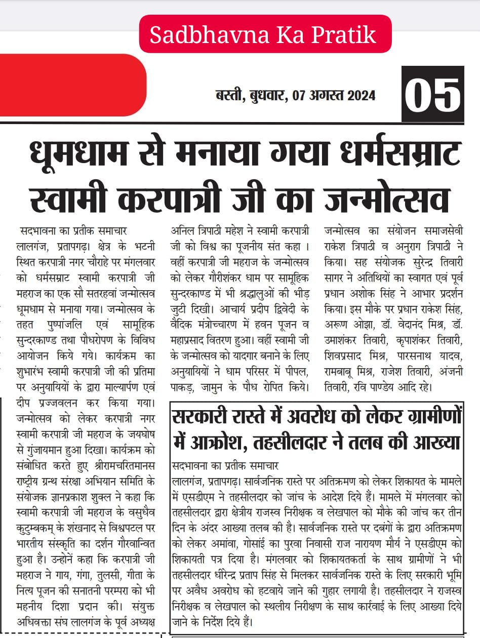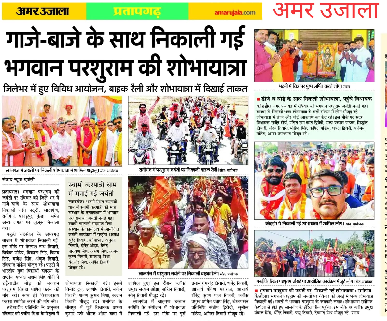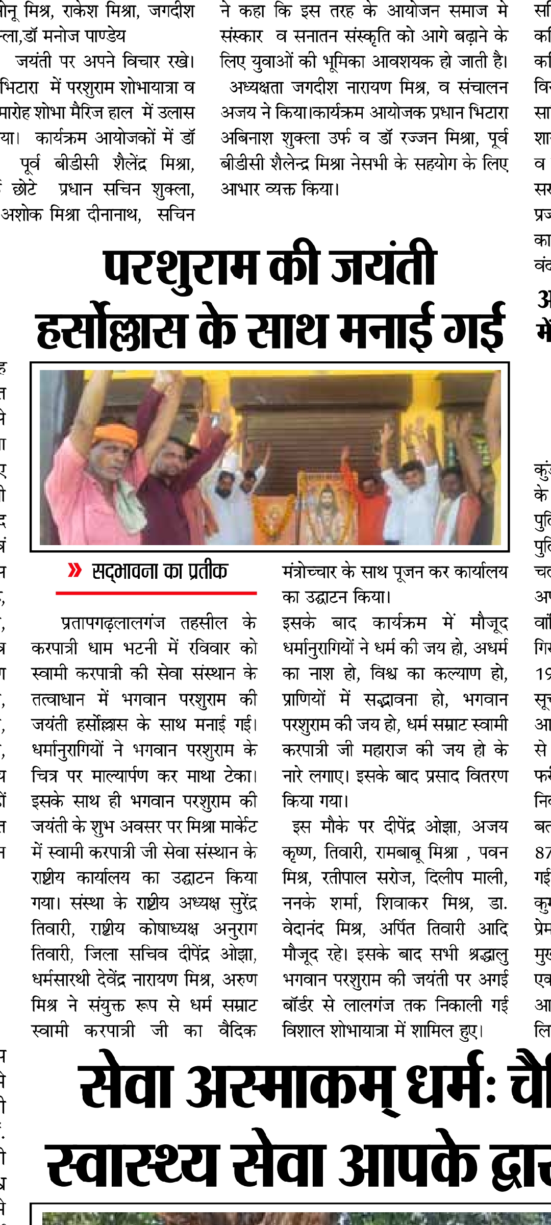 20 अप्रैल 2026 को कार्यालय उद्घाटन व भगवान परशुराम जन्मोत्सव की प्रकाशित खबरें,
