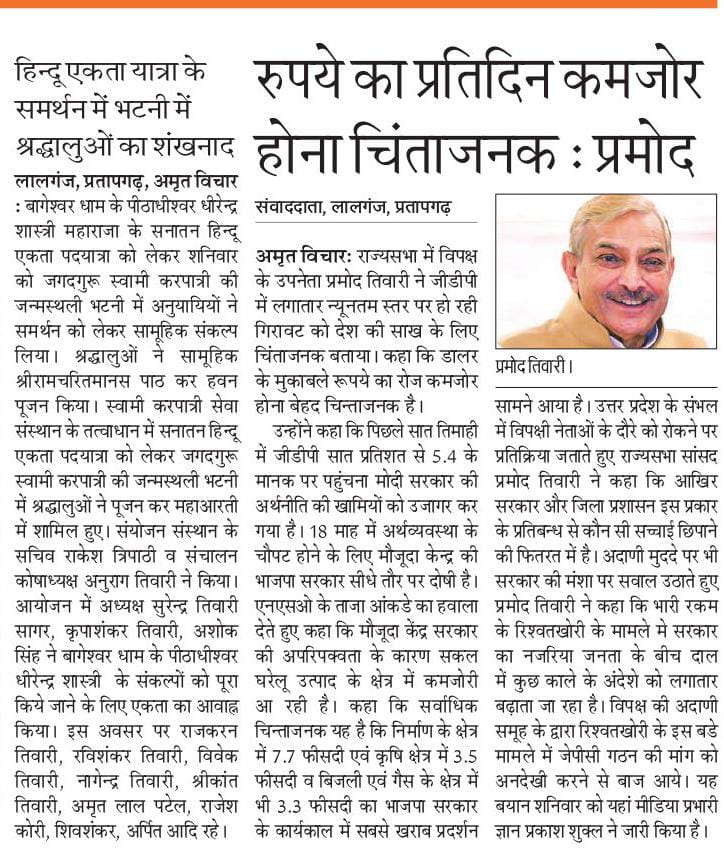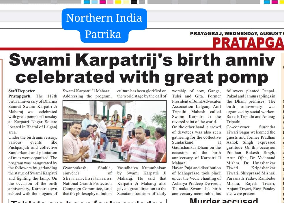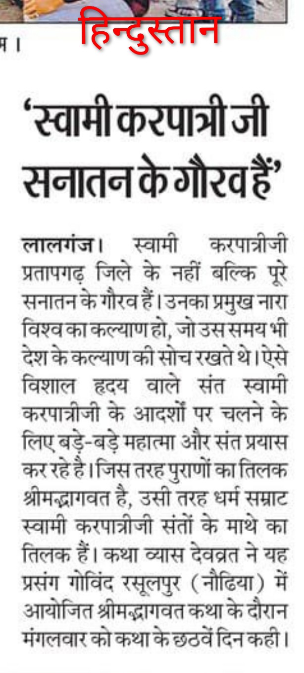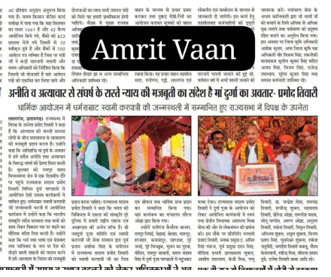 18 फरवरी 2026 को अखबारों में प्रकाशित भागवत भूषण श्री देवव्रत जी को सम्मान करने की खबरें,