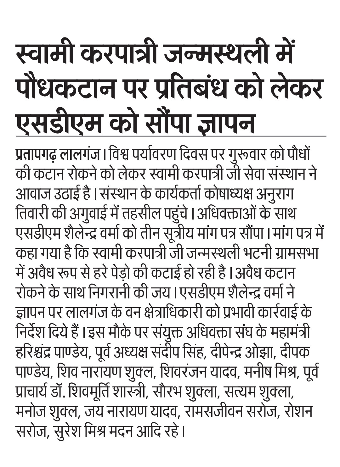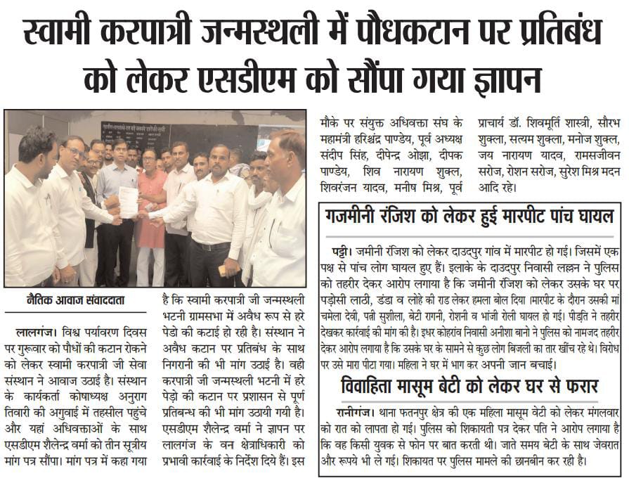 11 नंवबर 2025 को वृक्ष संरक्षण को लेकर ज्ञापन