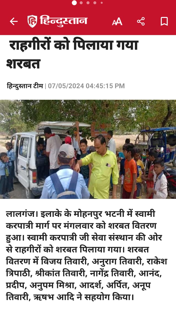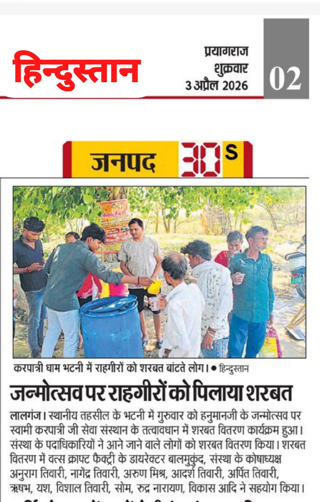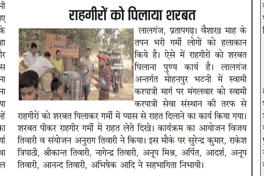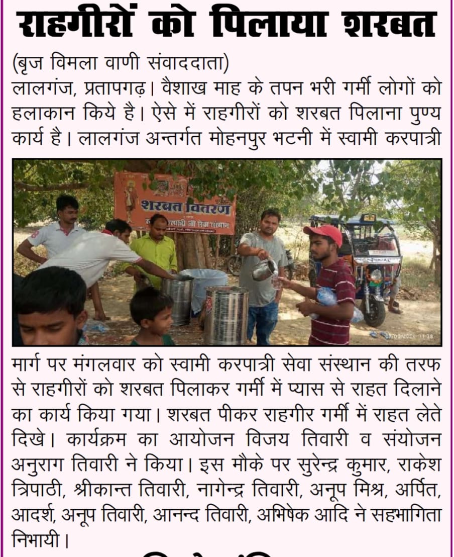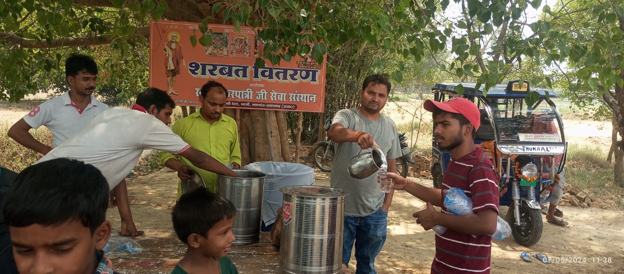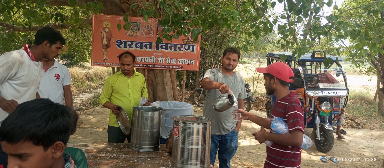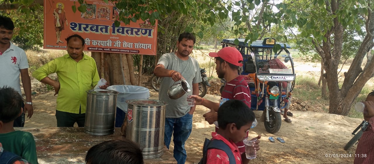 2 अप्रैल 2026 को श्री हनुमान जन्मोत्सव पर करपात्री धाम भटनी में पिलाया गया शरबत