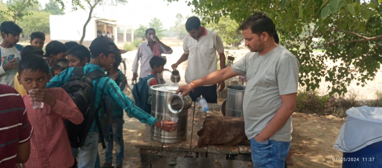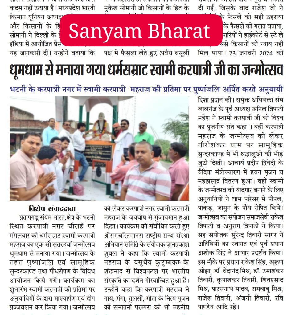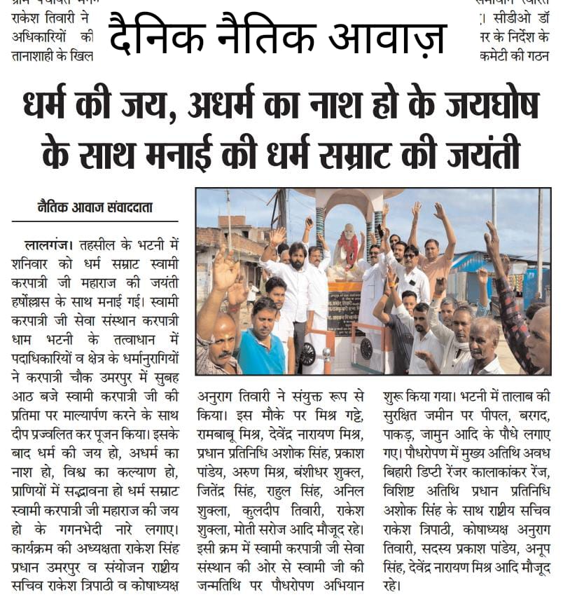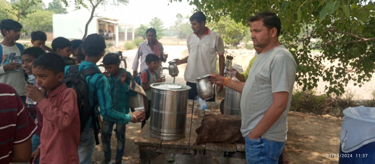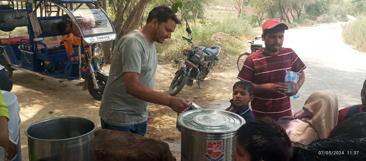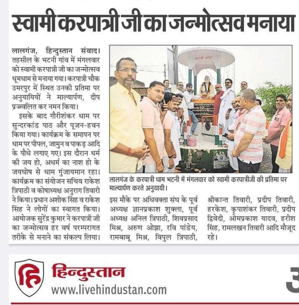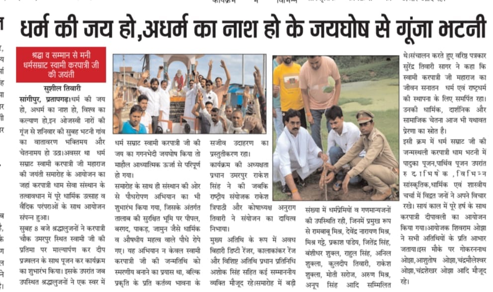 2 अप्रैल 2026 को श्री हनुमान जन्मोत्सव पर करपात्री धाम भटनी में पिलाया गया शरबत