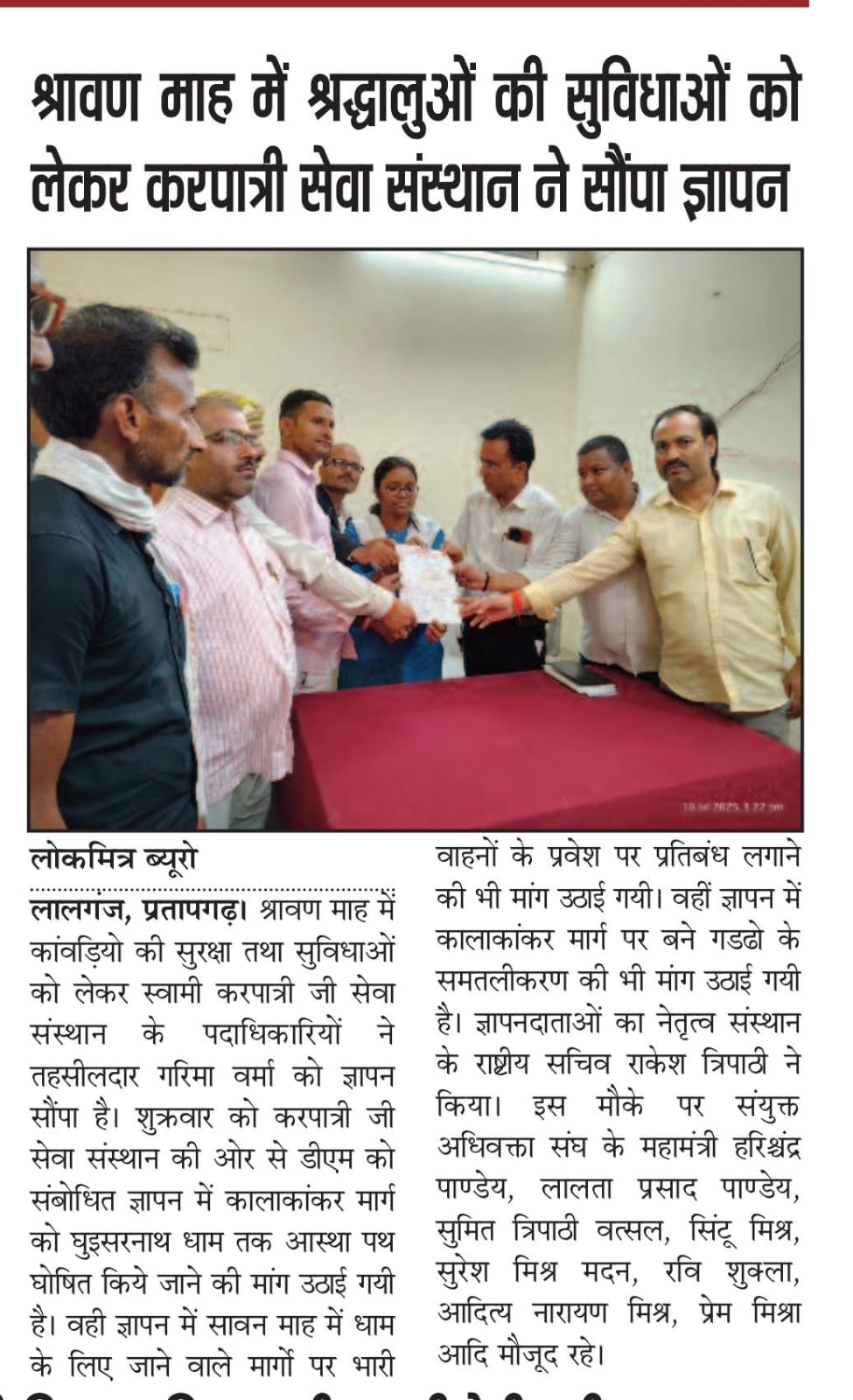 ज्ञापन - आयोजन 18/05/2025