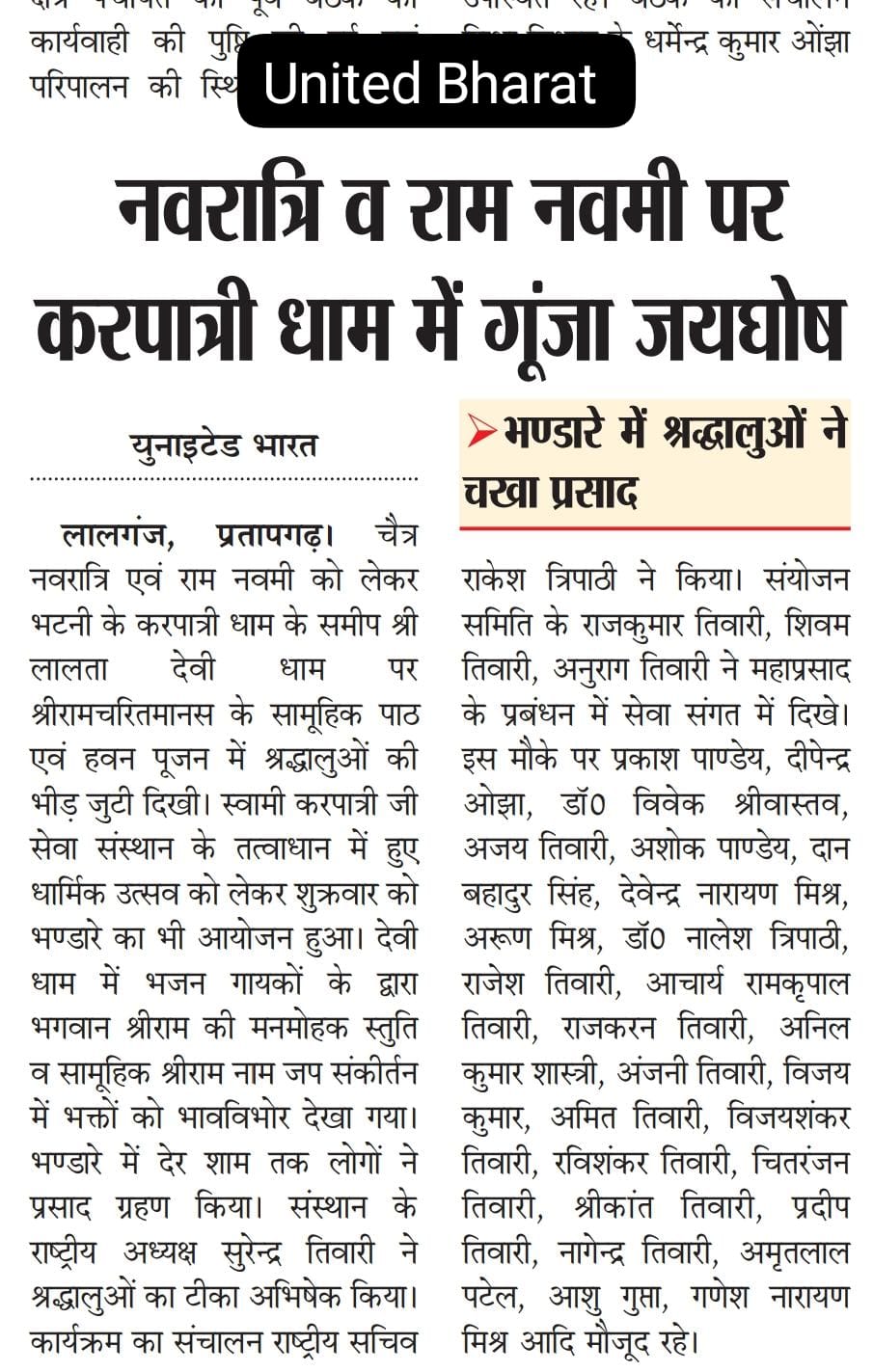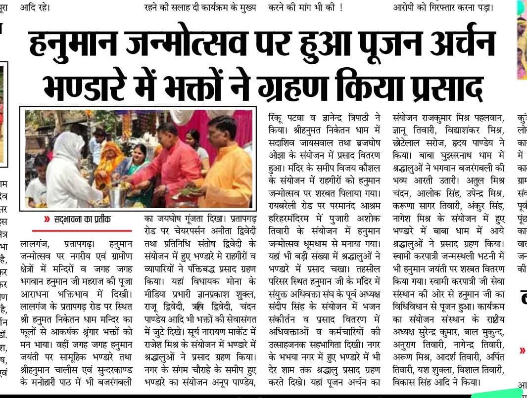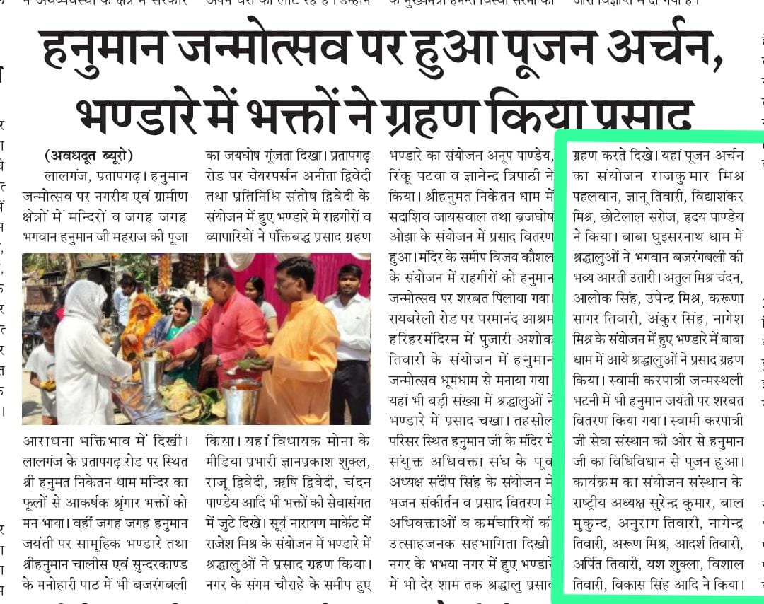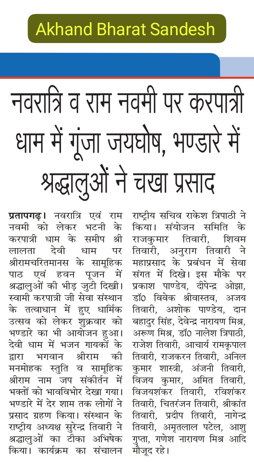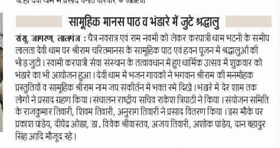 28 मार्च 2026 को श्रीरामचरितमानस पाठ व भंडारे की अख़बारों में प्रकाशित खबरें