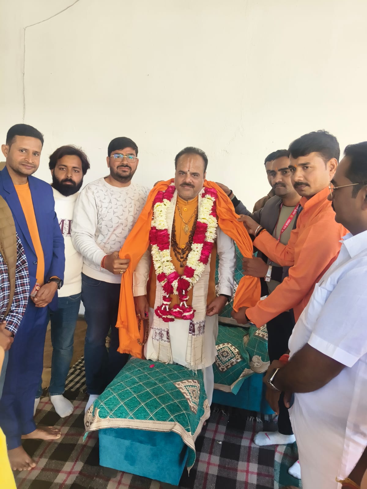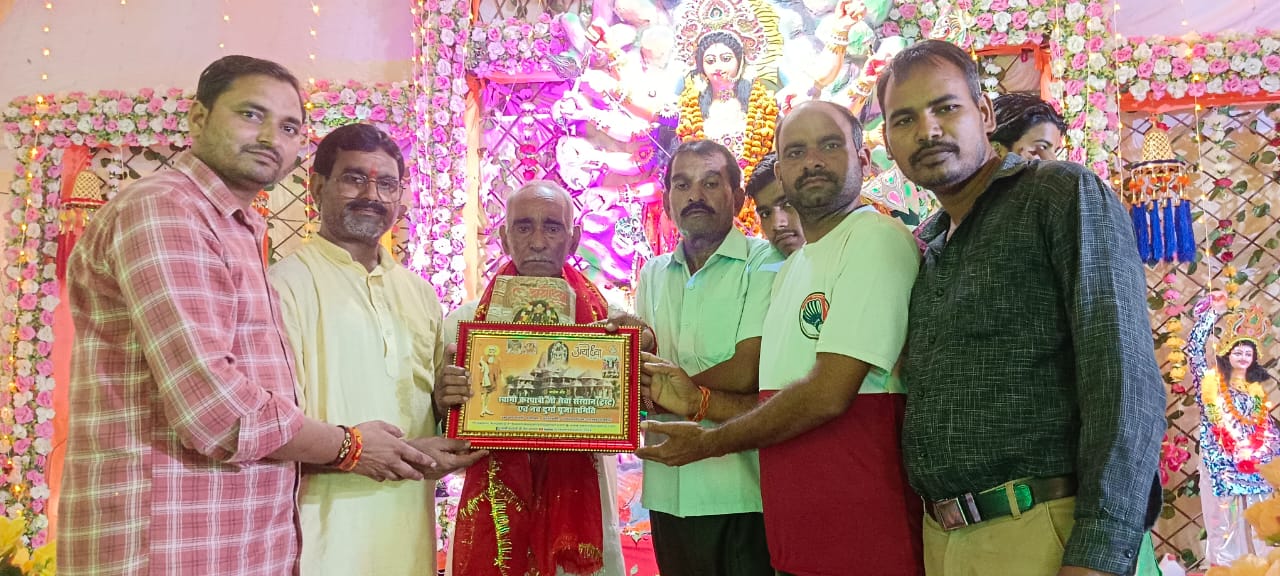6 फरवरी 2026 को करपात्री धाम भटनी में कथा से पूर्व अन्तर्राष्ट्रीय कथा व्यास श्री डा. श्याम सुंदर पाराशर जी को धर्म सम्राट स्वामी करपात्री जी का चित्र व अंगवस्त्र भेंट किया गया