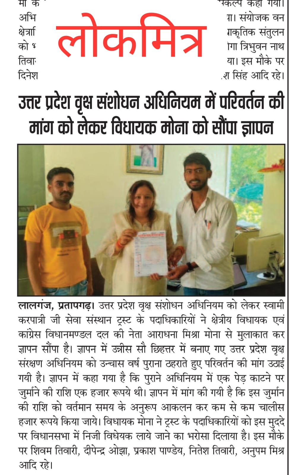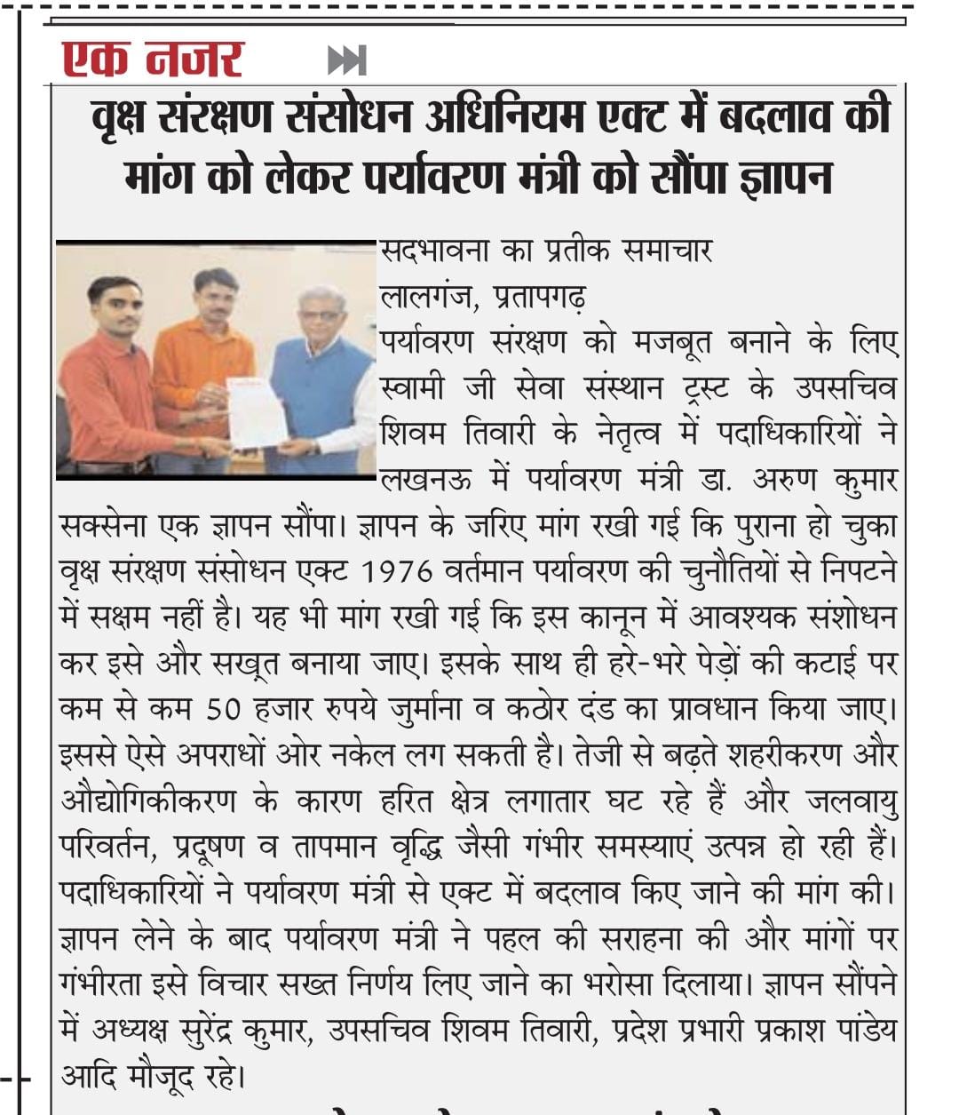पर्यावरण मंत्री - डॉ०अरुण कुमार सक्सेना - ज्ञापन - आयोजन 11/07/2025